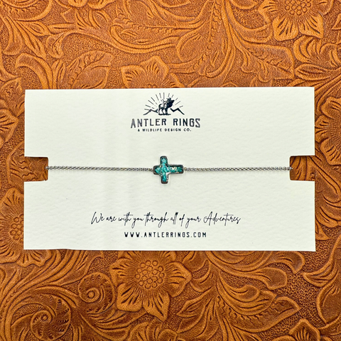 THE CROSS BRACELET, crafted from durable stainless steel and inlaid with vibrant crushed turquoise, this adjustable bracelet blends faith and Western style.