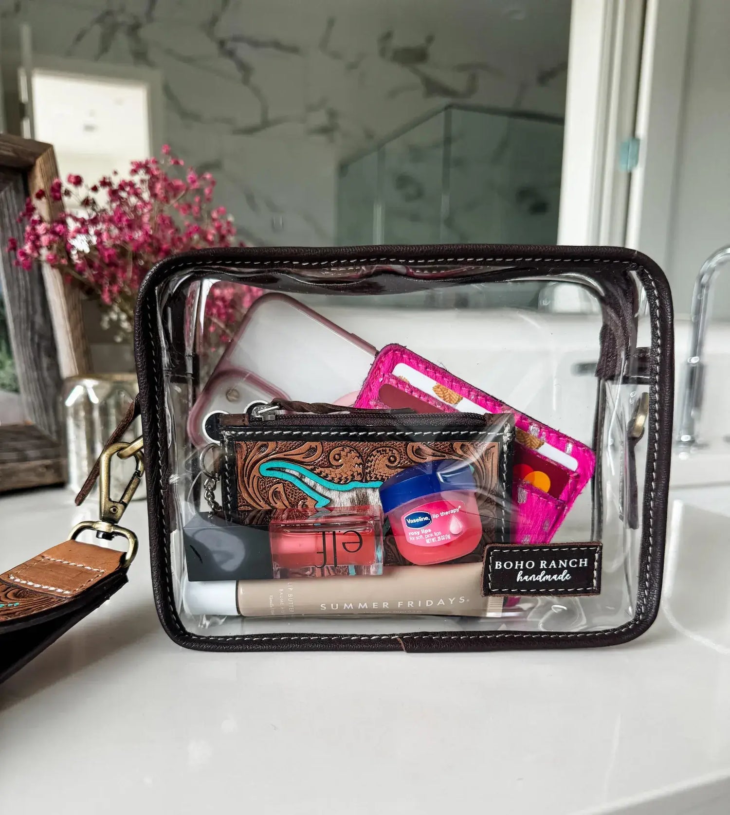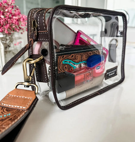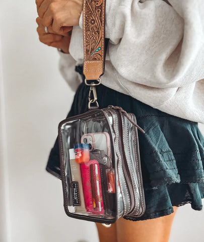 Boho Ranch Shop - DARLA CLEAR WRISTLET | transparent western purse - game day : BROWN