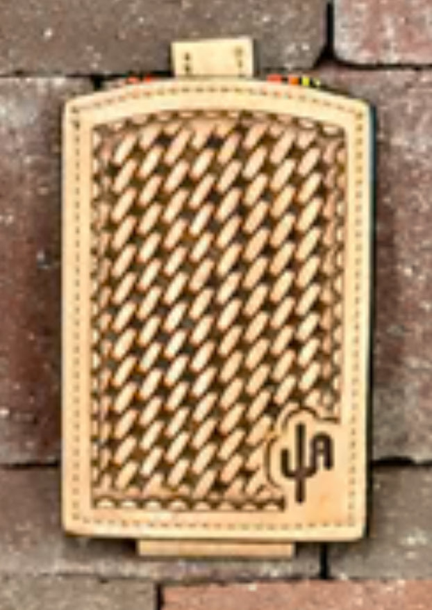 CACTUS ALLEY HAT CO BASKET STAMP HANDMADE LEATHER RIBBON WALLET WITH MAGNET