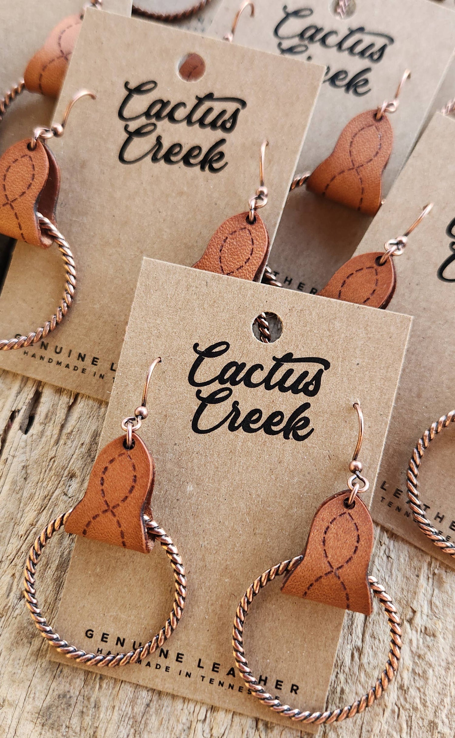 Cocklebur Clothing Co. - "Lari Dee" Handmade Boot Stitch Leather & Rope Earrings