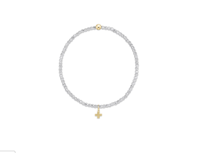 E NEWTON EXTENDS BRIGHT SILVER FACETED HEMATITE 2MM BEAD BRACELET -SIGNATURE CROSS GOLD CHARM