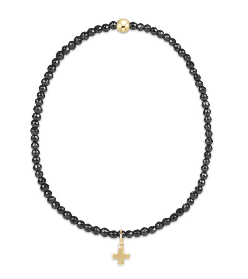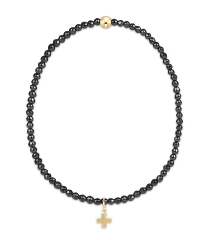 E NEWTON FACETED HEMATITE 2MM BEAD BRACELET -SIGNATURE GOLD CROSS