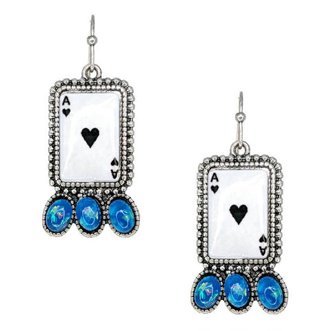 Fashion City - Ace of Heart Designed Hook Earrings: SBBL / ONE SIZE