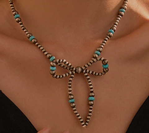Honey Beez Boutique - Turquoise beaded bow necklace