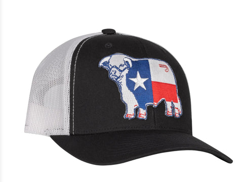 LAZY J RANCH BLACK & WHITE TEXAS BULL MID PROFILE TRUCKER HAT
