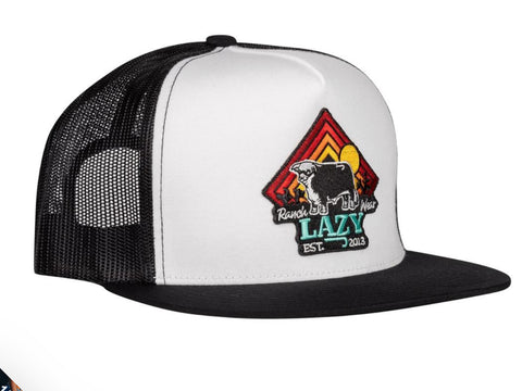 LAZY J RANCH WHITE & BLACK CACTUS SUNRISE CLASSIC FIVE PANEL TRUCKER HAT