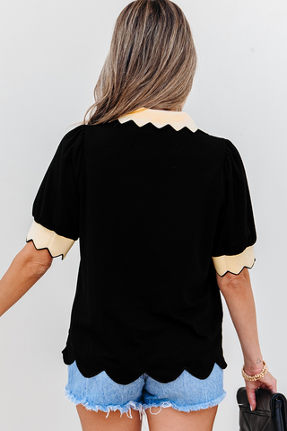 Little Daisy Closet - LDC Casual V Neck Shift Western Blouse: Black / S