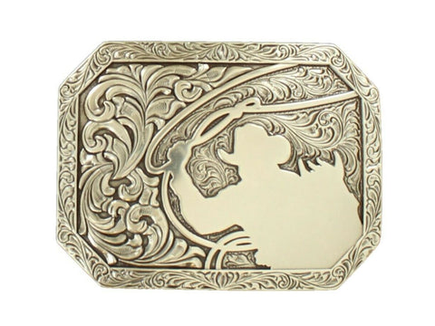 NOCONA RECTANGLE STAMPED EDGE COWBOY ROPING BELT BUCKLE