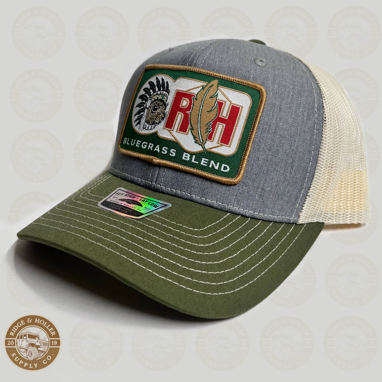 The Bluegrass Blend has returned and it's even better than before! Take a look at this SnapBack hat in heather grey, olive, and cream - it's the perfect mid rise accessory.
