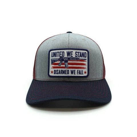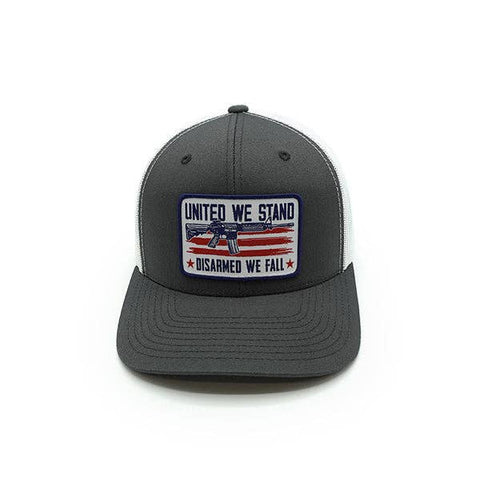 Shield Republic LLC - United We Stand Disarmed We Fall Woven Patch Hat: Curved Bill Snapback / Charcoal and White