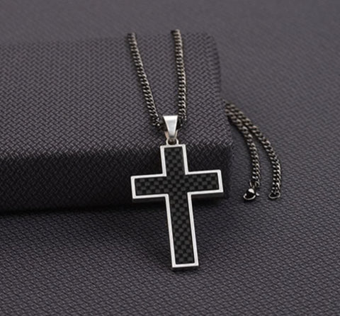 SILVER STRIKE 22” GUNMETAL CROSS NECKLACE