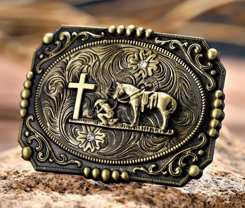 SimpleNGreat - Praying Cowboy Belt Buckle 1790: Antique Silver