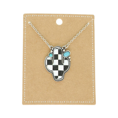 SP Sophia Collection - Western Checkerboard Cactus Pendant Necklace