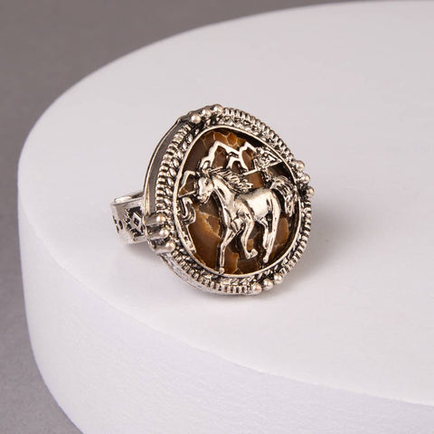 Embrace the spirit of the Wild West with this eye-catching Horse Stretch Ring, available in either brown or turquoise. Set in silver-tone oxidized metal, this handcrafted ring features a beautifully detailed horse ornament, perfect for any cowgirl or western enthusiast. It's a stylish accessory that combines ranch style with southwestern charm, ideal for daily wear or special events.
