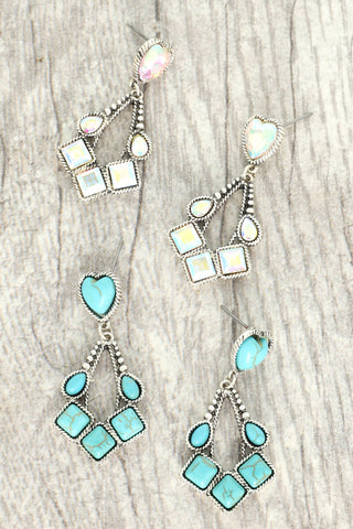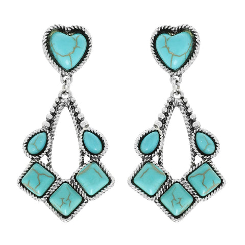 SP Sophia Collection - Western Jeweled Two tier Heart Teardrop Earrings : Turquoise