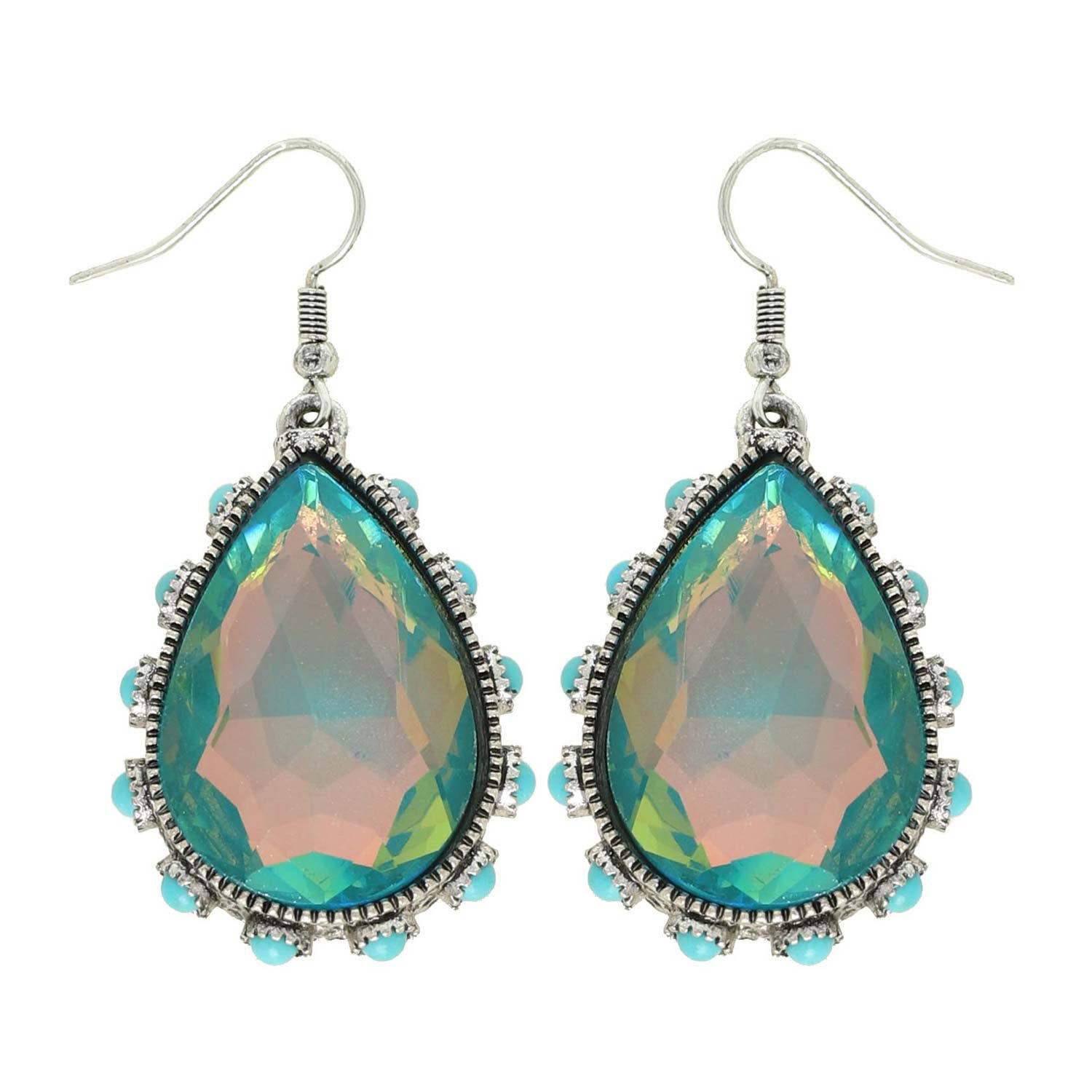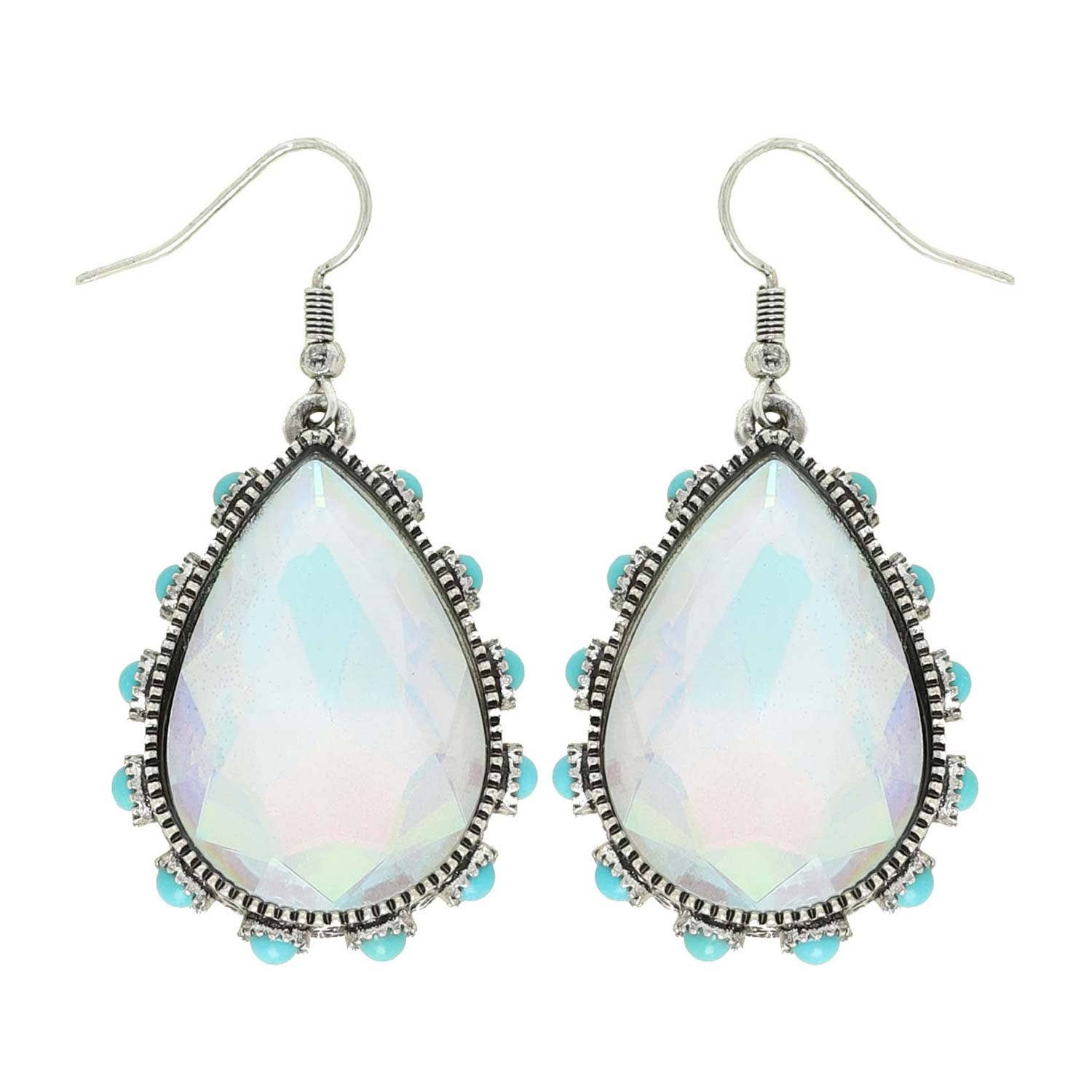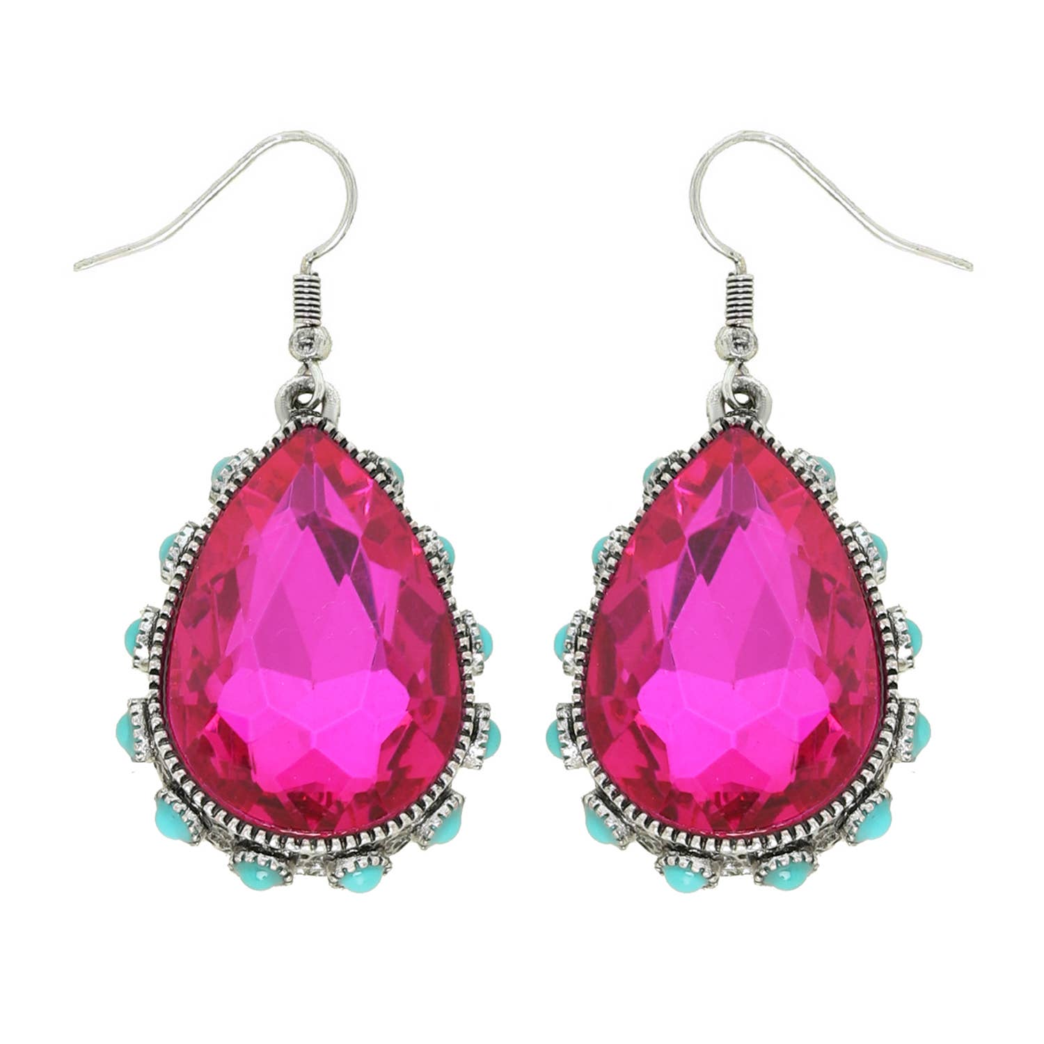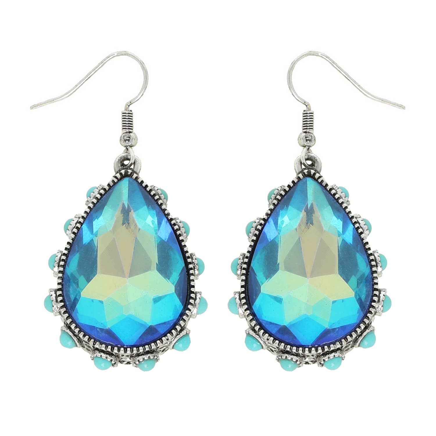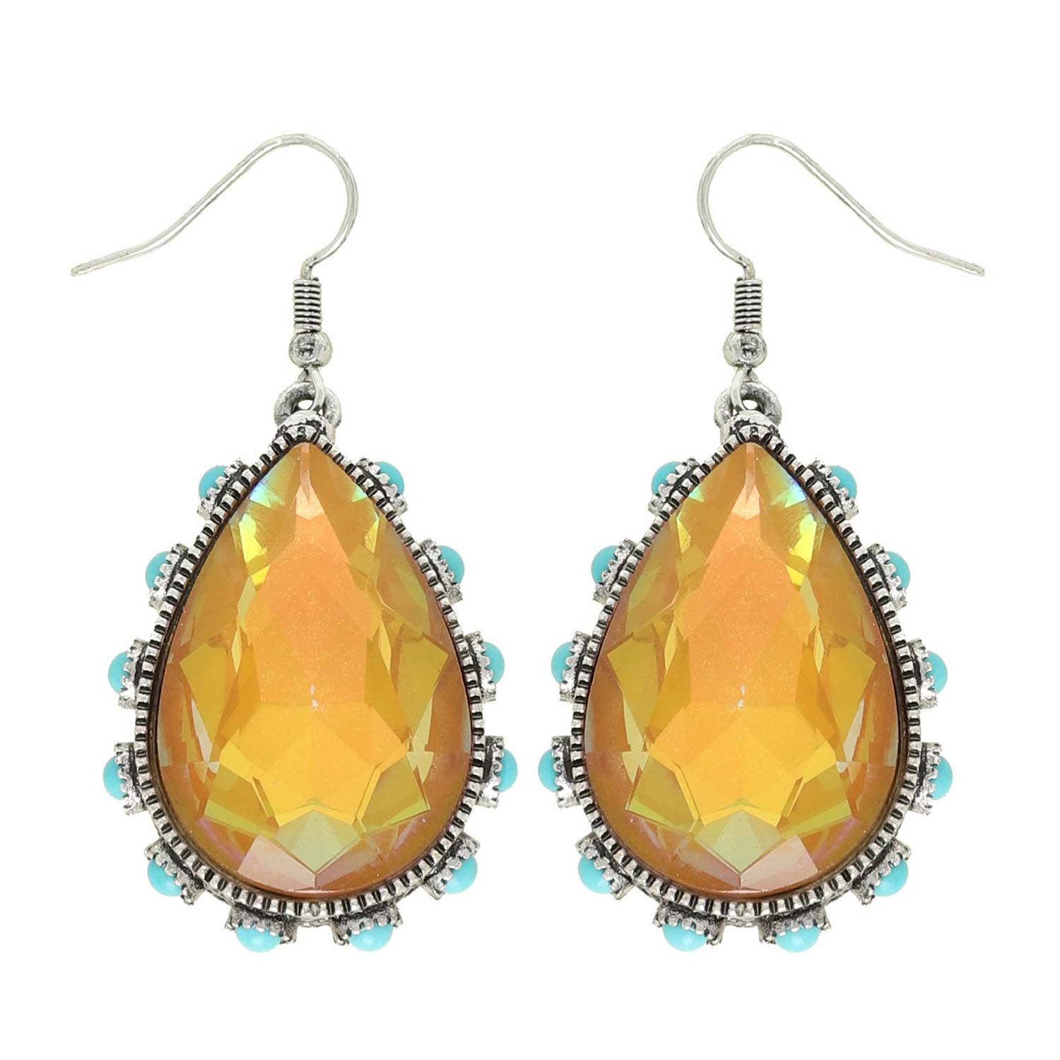 SP Sophia Collection - Western Teardrop Cut Gemstone Turquoise Earrings: Turquoise