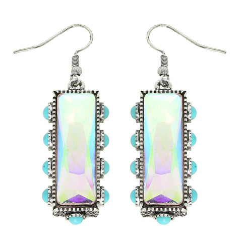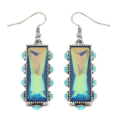 SP Sophia Collection - Western Turquoise Rectangle Gemstone Earrings: Crystal