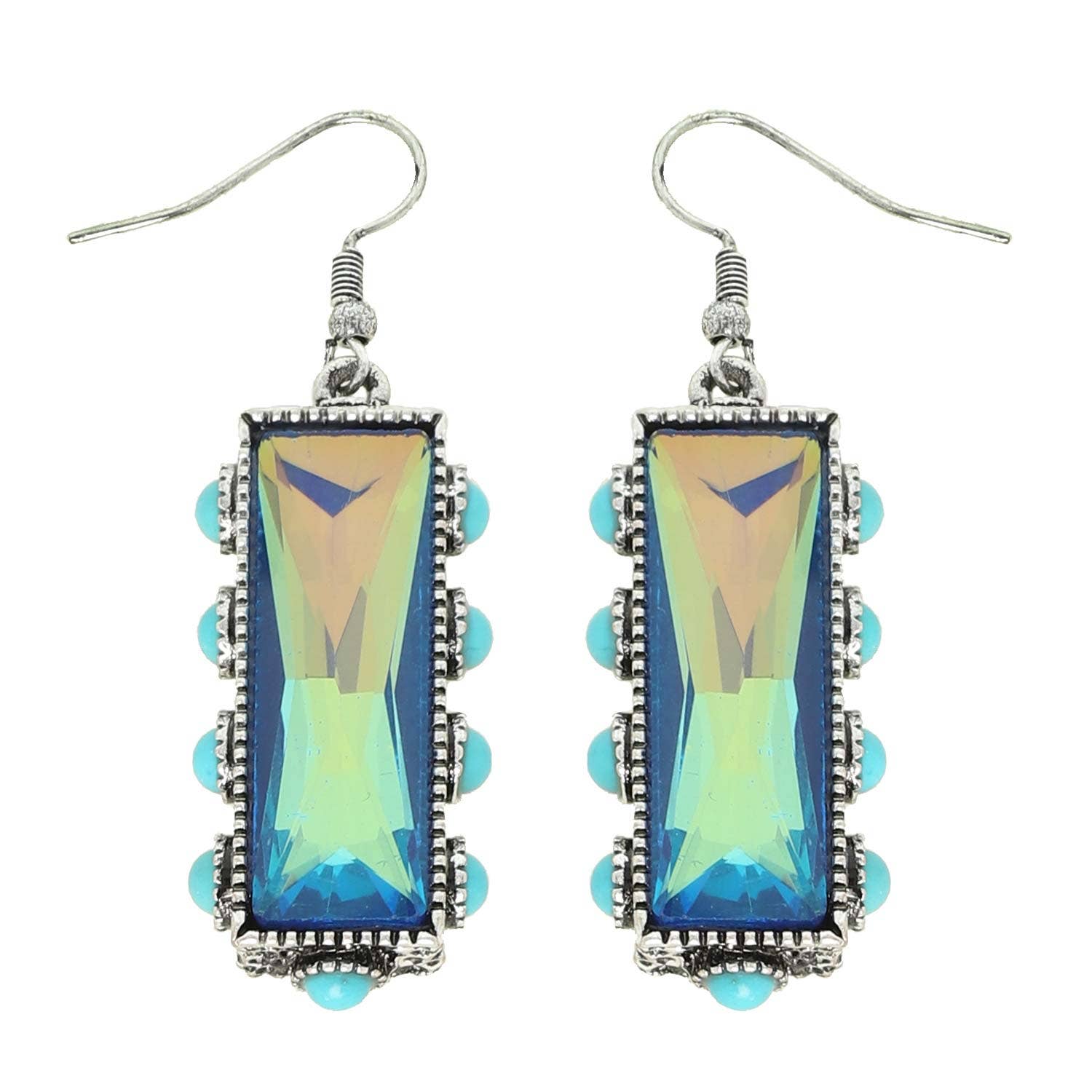 SP Sophia Collection - Western Turquoise Rectangle Gemstone Earrings: Teal