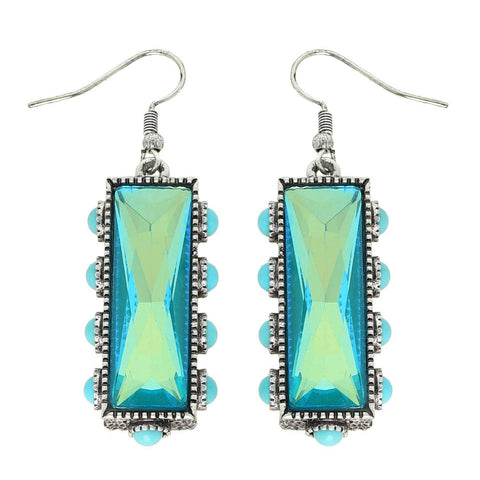 Enhance your outfit with these elegant Western Turquoise Rectangle Gemstone Earrings. Made with high-quality gemstones, these earrings offer a stunning addition to any jewelry collection. The unique rectangular shape adds a touch of modern sophistication, while the vibrant turquoise color brings a pop of color to your look. Elevate your style with these beautiful earrings.