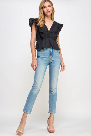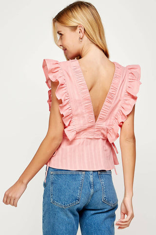 Strut & Bolt - Smocked Detail Ruffle Top: FLAMINGO PINK