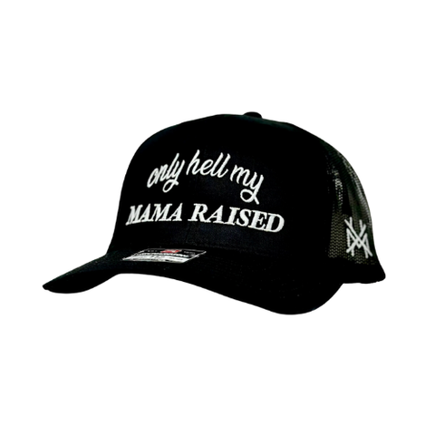The Mad Hatter Co - MHC Only Hell My Mama Raised Trucker Hat: 112 PFP Bark Duck Camo