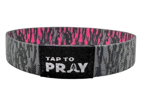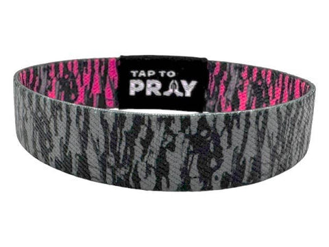Versible - Tap To Pray™ Wristbands - Tree Bark Camo Pink & Grey: Large