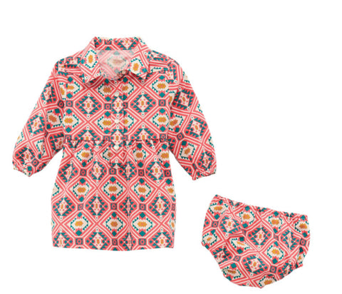 WRANGLER BABY GIRLS LONG SLEEVE RED AZTEC DRESS