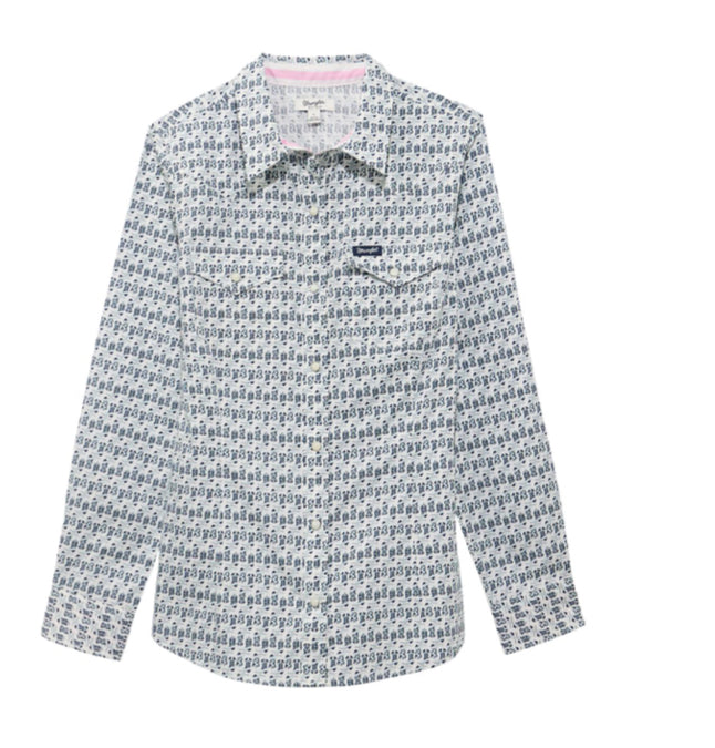 WRANGLER WOMENS LONG SLEEVE DRESS SNAP WITH BOOT PRINT
